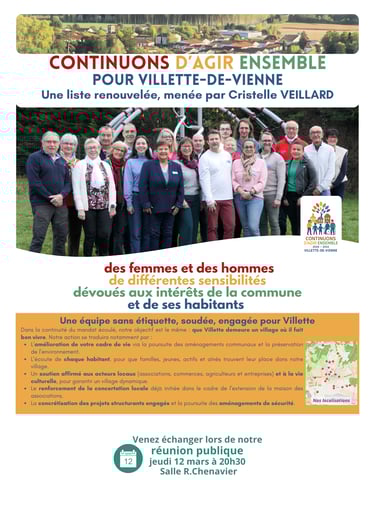 "CONTINUONS D'AGIR ENSEMBLE POUR VILLETTE-DE-VIENNE" menée par Cristelle VEILLARD.